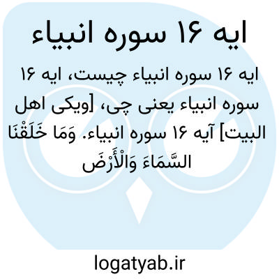 [ویکی اهل البیت] آیه 16 سوره انبیاء. وَمَا خَلَقْنَا السَّمَاءَ وَالْأَرْضَ وَمَا بَیْنَهُمَا لَاعِبِینَ