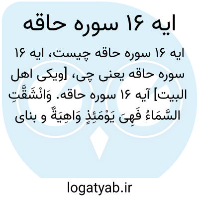 [ویکی اهل البیت] آیه 16 سوره حاقه. وَانْشَقَّتِ السَّمَاءُ فَهِیَ یَوْمَئِذٍ وَاهِیَةٌ
