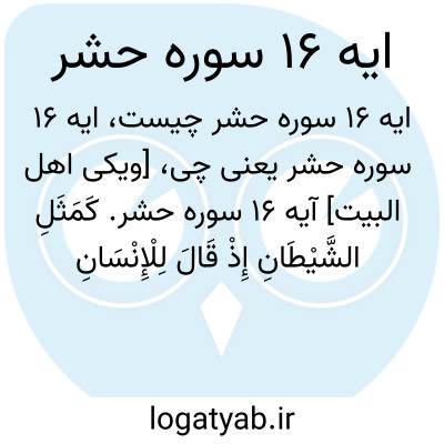 [ویکی اهل البیت] آیه 16 سوره حشر. کَمَثَلِ الشَّیْطَانِ إِذْ قَالَ لِلْإِنْسَانِ اکْفُرْ فَلَمَّا کَفَرَ قَالَ إِنِّی بَرِیءٌ مِنْکَ إِنِّی أَخَافُ اللَّهَ رَبَّ الْعَالَمِینَ