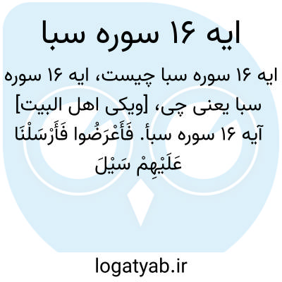 [ویکی اهل البیت] آیه 16 سوره سبأ. فَأَعْرَضُوا فَأَرْسَلْنَا عَلَیْهِمْ سَیْلَ الْعَرِمِ وَبَدَّلْنَاهُمْ بِجَنَّتَیْهِمْ جَنَّتَیْنِ ذَوَاتَیْ أُکُلٍ خَمْطٍ وَأَثْلٍ وَشَیْءٍ مِنْ سِدْرٍ قَلِیلٍ