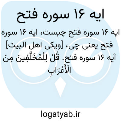 [ویکی اهل البیت] آیه 16 سوره فتح. قُلْ لِلْمُخَلَّفِینَ مِنَ الْأَعْرَابِ سَتُدْعَوْنَ إِلَیٰ قَوْمٍ أُولِی بَأْسٍ شَدِیدٍ تُقَاتِلُونَهُمْ أَوْ یُسْلِمُونَ ۖ فَإِنْ تُطِیعُوا یُؤْتِکُمُ اللَّهُ أَجْرًا حَسَنًا ۖ وَإِنْ تَتَوَلَّوْا کَمَا تَوَلَّیْتُمْ مِنْ قَبْلُ یُعَذِّبْکُمْ عَذَابًا أَلِیمًا