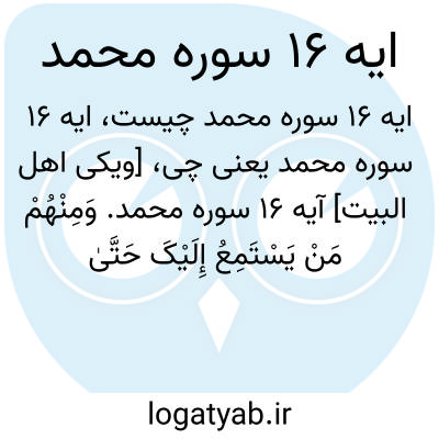 [ویکی اهل البیت] آیه 16 سوره محمد. وَمِنْهُمْ مَنْ یَسْتَمِعُ إِلَیْکَ حَتَّیٰ إِذَا خَرَجُوا مِنْ عِنْدِکَ قَالُوا لِلَّذِینَ أُوتُوا الْعِلْمَ مَاذَا قَالَ آنِفًا ۚ أُولَٰئِکَ الَّذِینَ طَبَعَ اللَّهُ عَلَیٰ قُلُوبِهِمْ وَاتَّبَعُوا أَهْوَاءَهُمْ