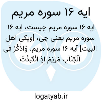 [ویکی اهل البیت] آیه 16 سوره مریم. وَاذْکُرْ فِی الْکِتَابِ مَرْیَمَ إِذِ انْتَبَذَتْ مِنْ أَهْلِهَا مَکَانًا شَرْقِیًّا