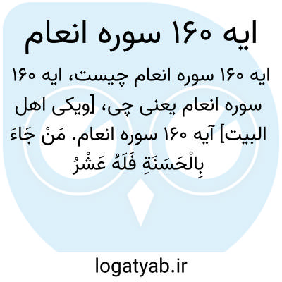 [ویکی اهل البیت] آیه 160 سوره انعام. مَنْ جَاءَ بِالْحَسَنَةِ فَلَهُ عَشْرُ أَمْثَالِهَا ۖ وَمَنْ جَاءَ بِالسَّیِّئَةِ فَلَا یُجْزَیٰ إِلَّا مِثْلَهَا وَهُمْ لَا یُظْلَمُونَ