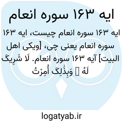 [ویکی اهل البیت] آیه 163 سوره انعام. لَا شَرِیکَ لَهُ ۖ وَبِذَٰلِکَ أُمِرْتُ وَأَنَا أَوَّلُ الْمُسْلِمِینَ