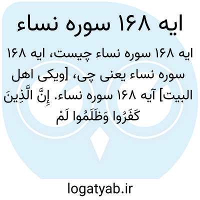 [ویکی اهل البیت] آیه 168 سوره نساء. إِنَّ الَّذِینَ کَفَرُوا وَظَلَمُوا لَمْ یَکُنِ اللَّهُ لِیَغْفِرَ لَهُمْ وَلَا لِیَهْدِیَهُمْ طَرِیقًا