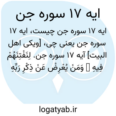 [ویکی اهل البیت] آیه 17 سوره جن. لِنَفْتِنَهُمْ فِیهِ ۚ وَمَنْ یُعْرِضْ عَنْ ذِکْرِ رَبِّهِ یَسْلُکْهُ عَذَابًا صَعَدًا