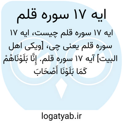 [ویکی اهل البیت] آیه 17 سوره قلم. إِنَّا بَلَوْنَاهُمْ کَمَا بَلَوْنَا أَصْحَابَ الْجَنَّةِ إِذْ أَقْسَمُوا لَیَصْرِمُنَّهَا مُصْبِحِینَ