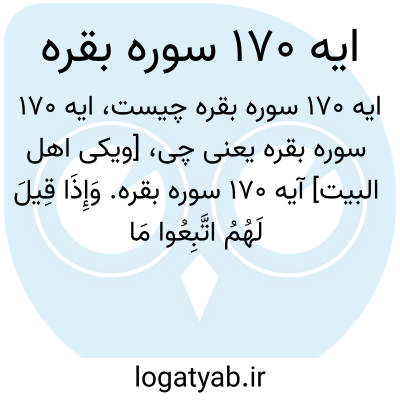 [ویکی اهل البیت] آیه 170 سوره بقره. وَإِذَا قِیلَ لَهُمُ اتَّبِعُوا مَا أَنْزَلَ اللَّهُ قَالُوا بَلْ نَتَّبِعُ مَا أَلْفَیْنَا عَلَیْهِ آبَاءَنَا ۗ أَوَلَوْ کَانَ آبَاؤُهُمْ لَا یَعْقِلُونَ شَیْئًا وَلَا یَهْتَدُونَ