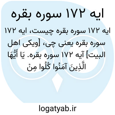 [ویکی اهل البیت] آیه 172 سوره بقره. یَا أَیُّهَا الَّذِینَ آمَنُوا کُلُوا مِنْ طَیِّبَاتِ مَا رَزَقْنَاکُمْ وَاشْکُرُوا لِلَّهِ إِنْ کُنْتُمْ إِیَّاهُ تَعْبُدُونَ