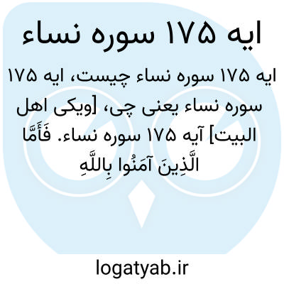 [ویکی اهل البیت] آیه 175 سوره نساء. فَأَمَّا الَّذِینَ آمَنُوا بِاللَّهِ وَاعْتَصَمُوا بِهِ فَسَیُدْخِلُهُمْ فِی رَحْمَةٍ مِنْهُ وَفَضْلٍ وَیَهْدِیهِمْ إِلَیْهِ صِرَاطًا مُسْتَقِیمًا