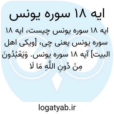 [ویکی اهل البیت] آیه 18 سوره یونس. وَیَعْبُدُونَ مِنْ دُونِ اللَّهِ مَا لَا یَضُرُّهُمْ وَلَا یَنْفَعُهُمْ وَیَقُولُونَ هَٰؤُلَاءِ شُفَعَاؤُنَا عِنْدَ اللَّهِ ۚ قُلْ أَتُنَبِّئُونَ اللَّهَ بِمَا لَا یَعْلَمُ فِی السَّمَاوَاتِ وَلَا فِی الْأَرْضِ ۚ سُبْحَانَهُ وَتَعَالَیٰ عَمَّا یُشْرِکُونَ