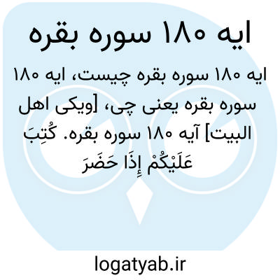 [ویکی اهل البیت] آیه 180 سوره بقره. کُتِبَ عَلَیْکُمْ إِذَا حَضَرَ أَحَدَکُمُ الْمَوْتُ إِنْ تَرَکَ خَیْرًا الْوَصِیَّةُ لِلْوَالِدَیْنِ وَالْأَقْرَبِینَ بِالْمَعْرُوفِ ۖ حَقًّا عَلَی الْمُتَّقِینَ