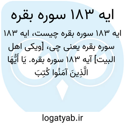 [ویکی اهل البیت] آیه 183 سوره بقره. یَا أَیُّهَا الَّذِینَ آمَنُوا کُتِبَ عَلَیْکُمُ الصِّیَامُ کَمَا کُتِبَ عَلَی الَّذِینَ مِنْ قَبْلِکُمْ لَعَلَّکُمْ تَتَّقُونَ