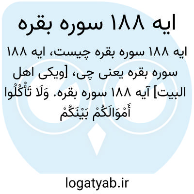 [ویکی اهل البیت] آیه 188 سوره بقره. وَلَا تَأْکُلُوا أَمْوَالَکُمْ بَیْنَکُمْ بِالْبَاطِلِ وَتُدْلُوا بِهَا إِلَی الْحُکَّامِ لِتَأْکُلُوا فَرِیقًا مِنْ أَمْوَالِ النَّاسِ بِالْإِثْمِ وَأَنْتُمْ تَعْلَمُونَ