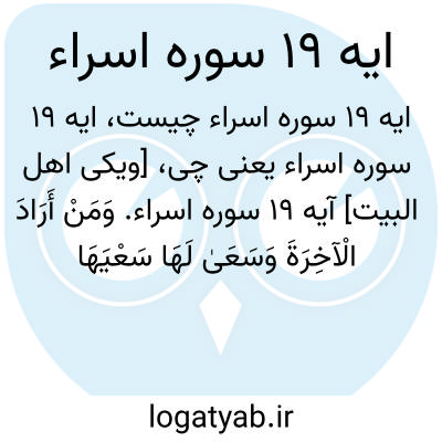 [ویکی اهل البیت] آیه 19 سوره اسراء. وَمَنْ أَرَادَ الْآخِرَةَ وَسَعَیٰ لَهَا سَعْیَهَا وَهُوَ مُؤْمِنٌ فَأُولَٰئِکَ کَانَ سَعْیُهُمْ مَشْکُورًا