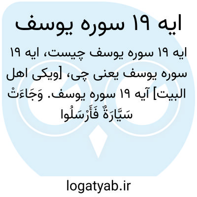 [ویکی اهل البیت] آیه 19 سوره یوسف. وَجَاءَتْ سَیَّارَةٌ فَأَرْسَلُوا وَارِدَهُمْ فَأَدْلَیٰ دَلْوَهُ ۖ قَالَ یَا بُشْرَیٰ هَٰذَا غُلَامٌ ۚ وَأَسَرُّوهُ بِضَاعَةً ۚ وَاللَّهُ عَلِیمٌ بِمَا یَعْمَلُونَ