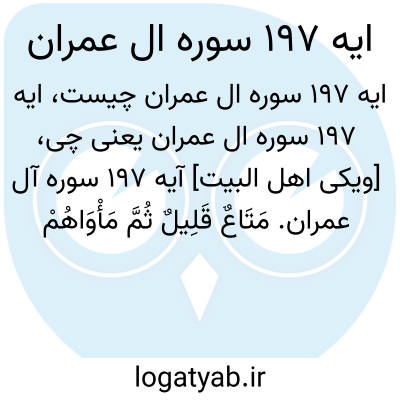 [ویکی اهل البیت] آیه 197 سوره آل عمران. مَتَاعٌ قَلِیلٌ ثُمَّ مَأْوَاهُمْ جَهَنَّمُ ۚ وَبِئْسَ الْمِهَادُ