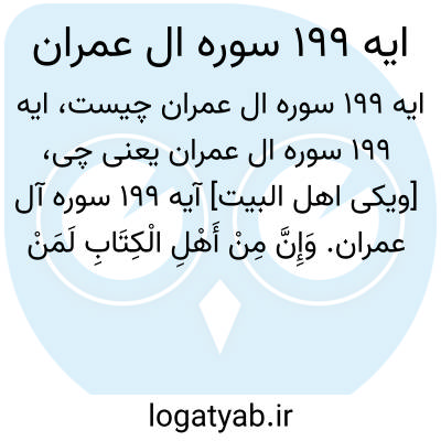 [ویکی اهل البیت] آیه 199 سوره آل عمران. وَإِنَّ مِنْ أَهْلِ الْکِتَابِ لَمَنْ یُؤْمِنُ بِاللَّهِ وَمَا أُنْزِلَ إِلَیْکُمْ وَمَا أُنْزِلَ إِلَیْهِمْ خَاشِعِینَ لِلَّهِ لَا یَشْتَرُونَ بِآیَاتِ اللَّهِ ثَمَنًا قَلِیلًا ۗ أُولَٰئِکَ لَهُمْ أَجْرُهُمْ عِنْدَ رَبِّهِمْ ۗ إِنَّ اللَّهَ سَرِیعُ الْحِسَابِ