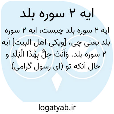 [ویکی اهل البیت] آیه 2 سوره بلد. وَأَنْتَ حِلٌّ بِهَٰذَا الْبَلَدِ