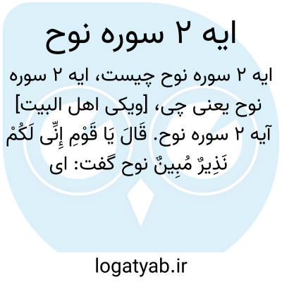 [ویکی اهل البیت] آیه 2 سوره نوح. قَالَ یَا قَوْمِ إِنِّی لَکُمْ نَذِیرٌ مُبِینٌ