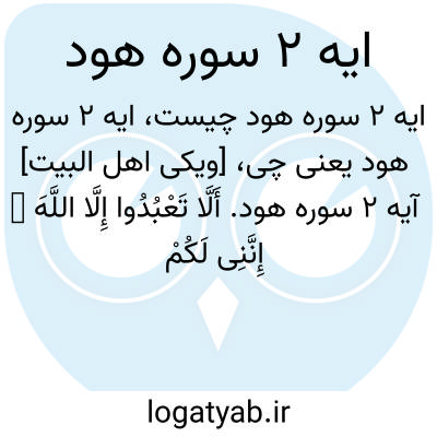 [ویکی اهل البیت] آیه 2 سوره هود. أَلَّا تَعْبُدُوا إِلَّا اللَّهَ ۚ إِنَّنِی لَکُمْ مِنْهُ نَذِیرٌ وَبَشِیرٌ