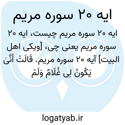 [ویکی اهل البیت] آیه 20 سوره مریم. قَالَتْ أَنَّیٰ یَکُونُ لِی غُلَامٌ وَلَمْ یَمْسَسْنِی بَشَرٌ وَلَمْ أَکُ بَغِیًّا
