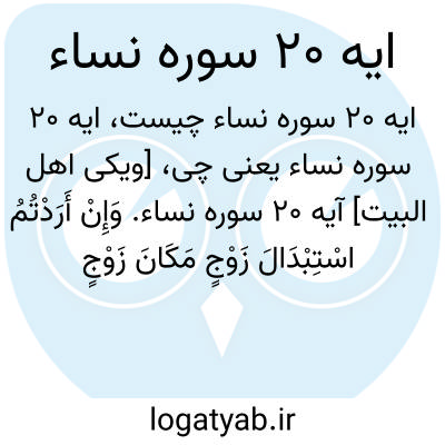 [ویکی اهل البیت] آیه 20 سوره نساء. وَإِنْ أَرَدْتُمُ اسْتِبْدَالَ زَوْجٍ مَکَانَ زَوْجٍ وَآتَیْتُمْ إِحْدَاهُنَّ قِنْطَارًا فَلَا تَأْخُذُوا مِنْهُ شَیْئًا ۚ أَتَأْخُذُونَهُ بُهْتَانًا وَإِثْمًا مُبِینًا