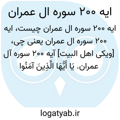 [ویکی اهل البیت] آیه 200 سوره آل عمران. یَا أَیُّهَا الَّذِینَ آمَنُوا اصْبِرُوا وَصَابِرُوا وَرَابِطُوا وَاتَّقُوا اللَّهَ لَعَلَّکُمْ تُفْلِحُونَ