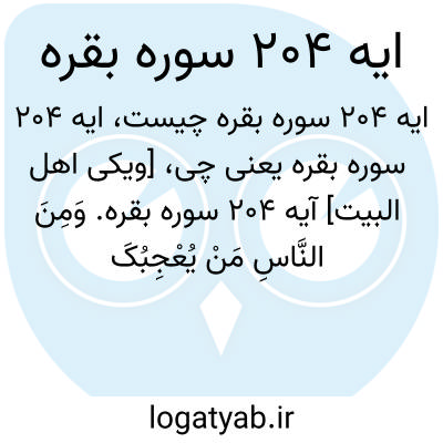 [ویکی اهل البیت] آیه 204 سوره بقره. وَمِنَ النَّاسِ مَنْ یُعْجِبُکَ قَوْلُهُ فِی الْحَیَاةِ الدُّنْیَا وَیُشْهِدُ اللَّهَ عَلَیٰ مَا فِی قَلْبِهِ وَهُوَ أَلَدُّ الْخِصَامِ