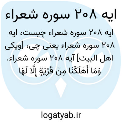 [ویکی اهل البیت] آیه 208 سوره شعراء. وَمَا أَهْلَکْنَا مِنْ قَرْیَةٍ إِلَّا لَهَا مُنْذِرُونَ