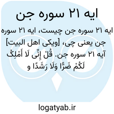 [ویکی اهل البیت] آیه 21 سوره جن. قُلْ إِنِّی لَا أَمْلِکُ لَکُمْ ضَرًّا وَلَا رَشَدًا