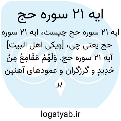 [ویکی اهل البیت] آیه 21 سوره حج. وَلَهُمْ مَقَامِعُ مِنْ حَدِیدٍ
