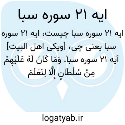 [ویکی اهل البیت] آیه 21 سوره سبأ. وَمَا کَانَ لَهُ عَلَیْهِمْ مِنْ سُلْطَانٍ إِلَّا لِنَعْلَمَ مَنْ یُؤْمِنُ بِالْآخِرَةِ مِمَّنْ هُوَ مِنْهَا فِی شَکٍّ ۗ وَرَبُّکَ عَلَیٰ کُلِّ شَیْءٍ حَفِیظٌ