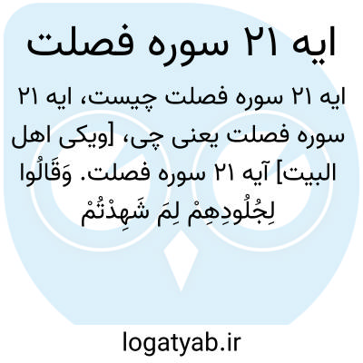 [ویکی اهل البیت] آیه 21 سوره فصلت. وَقَالُوا لِجُلُودِهِمْ لِمَ شَهِدْتُمْ عَلَیْنَا ۖ قَالُوا أَنْطَقَنَا اللَّهُ الَّذِی أَنْطَقَ کُلَّ شَیْءٍ وَهُوَ خَلَقَکُمْ أَوَّلَ مَرَّةٍ وَإِلَیْهِ تُرْجَعُونَ