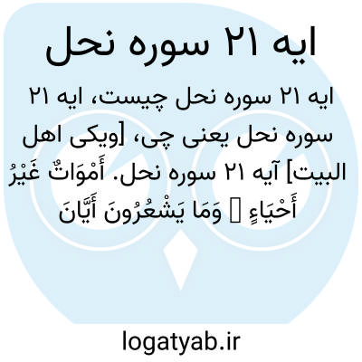 [ویکی اهل البیت] آیه 21 سوره نحل. أَمْوَاتٌ غَیْرُ أَحْیَاءٍ ۖ وَمَا یَشْعُرُونَ أَیَّانَ یُبْعَثُونَ