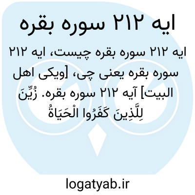 [ویکی اهل البیت] آیه 212 سوره بقره. زُیِّنَ لِلَّذِینَ کَفَرُوا الْحَیَاةُ الدُّنْیَا وَیَسْخَرُونَ مِنَ الَّذِینَ آمَنُوا ۘ وَالَّذِینَ اتَّقَوْا فَوْقَهُمْ یَوْمَ الْقِیَامَةِ ۗ وَاللَّهُ یَرْزُقُ مَنْ یَشَاءُ بِغَیْرِ حِسَابٍ