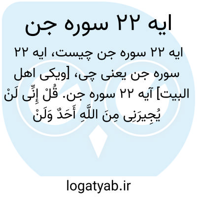 [ویکی اهل البیت] آیه 22 سوره جن. قُلْ إِنِّی لَنْ یُجِیرَنِی مِنَ اللَّهِ أَحَدٌ وَلَنْ أَجِدَ مِنْ دُونِهِ مُلْتَحَدًا