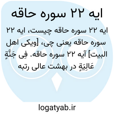 دانشنامه اسلامی [ویکی اهل البیت] آیه 22 سوره حاقه. فِی جَنَّةٍ عَالِیَةٍدر بهشت عالی رتبه (ابدی).«فِی جَنَّةٍ عَالِیَةٍ»: این آیه، بدل (فی عِیشَةٍ رَاضِیَةٍ) است.