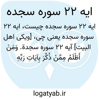 [ویکی اهل البیت] آیه 22 سوره سجده. وَمَنْ أَظْلَمُ مِمَّنْ ذُکِّرَ بِآیَاتِ رَبِّهِ ثُمَّ أَعْرَضَ عَنْهَا ۚ إِنَّا مِنَ الْمُجْرِمِینَ مُنْتَقِمُونَ