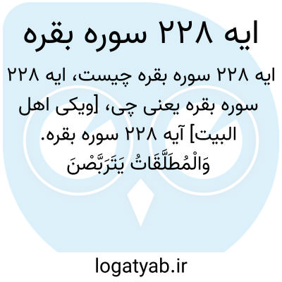 [ویکی اهل البیت] آیه 228 سوره بقره. وَالْمُطَلَّقَاتُ یَتَرَبَّصْنَ بِأَنْفُسِهِنَّ ثَلَاثَةَ قُرُوءٍ ۚ وَلَا یَحِلُّ لَهُنَّ أَنْ یَکْتُمْنَ مَا خَلَقَ اللَّهُ فِی أَرْحَامِهِنَّ إِنْ کُنَّ یُؤْمِنَّ بِاللَّهِ وَالْیَوْمِ الْآخِرِ ۚ وَبُعُولَتُهُنَّ أَحَقُّ بِرَدِّهِنَّ فِی ذَٰلِکَ إِنْ أَرَادُوا إِصْلَاحًا ۚ وَلَهُنَّ مِثْلُ الَّذِی عَلَیْهِنَّ بِالْمَعْرُوفِ ۚ وَلِلرِّجَالِ عَلَیْهِنَّ دَرَجَةٌ ۗ وَاللَّهُ عَزِیزٌ حَکِیمٌ