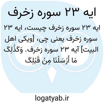 [ویکی اهل البیت] آیه 23 سوره زخرف. وَکَذَٰلِکَ مَا أَرْسَلْنَا مِنْ قَبْلِکَ فِی قَرْیَةٍ مِنْ نَذِیرٍ إِلَّا قَالَ مُتْرَفُوهَا إِنَّا وَجَدْنَا آبَاءَنَا عَلَیٰ أُمَّةٍ وَإِنَّا عَلَیٰ آثَارِهِمْ مُقْتَدُونَ