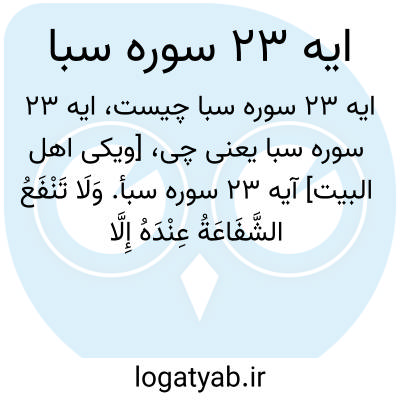 [ویکی اهل البیت] آیه 23 سوره سبا. وَلَا تَنْفَعُ الشَّفَاعَةُ عِنْدَهُ إِلَّا لِمَنْ أَذِنَ لَهُ ۚ حَتَّیٰ إِذَا فُزِّعَ عَنْ قُلُوبِهِمْ قَالُوا مَاذَا قَالَ رَبُّکُمْ ۖ قَالُوا الْحَقَّ ۖ وَهُوَ الْعَلِیُّ الْکَبِیرُ
