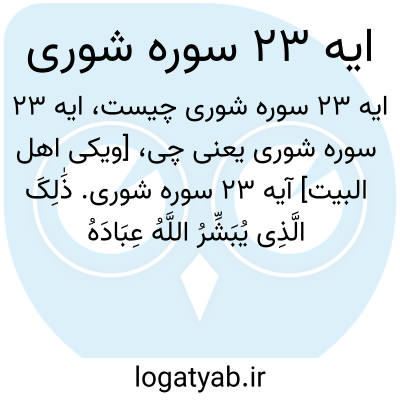 [ویکی اهل البیت] آیه 23 سوره شوری. ذَٰلِکَ الَّذِی یُبَشِّرُ اللَّهُ عِبَادَهُ الَّذِینَ آمَنُوا وَعَمِلُوا الصَّالِحَاتِ ۗ قُلْ لَا أَسْأَلُکُمْ عَلَیْهِ أَجْرًا إِلَّا الْمَوَدَّةَ فِی الْقُرْبَیٰ ۗ وَمَنْ یَقْتَرِفْ حَسَنَةً نَزِدْ لَهُ فِیهَا حُسْنًا ۚ إِنَّ اللَّهَ غَفُورٌ شَکُورٌ