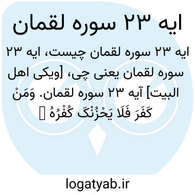[ویکی اهل البیت] آیه 23 سوره لقمان. وَمَنْ کَفَرَ فَلَا یَحْزُنْکَ کُفْرُهُ ۚ إِلَیْنَا مَرْجِعُهُمْ فَنُنَبِّئُهُمْ بِمَا عَمِلُوا ۚ إِنَّ اللَّهَ عَلِیمٌ بِذَاتِ الصُّدُورِ