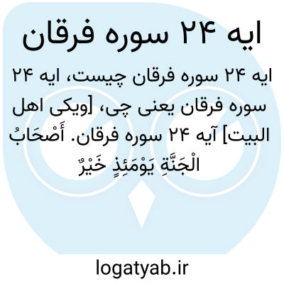 [ویکی اهل البیت] آیه 24 سوره فرقان. أَصْحَابُ الْجَنَّةِ یَوْمَئِذٍ خَیْرٌ مُسْتَقَرًّا وَأَحْسَنُ مَقِیلًا