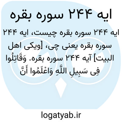 [ویکی اهل البیت] آیه 244 سوره بقره. وَقَاتِلُوا فِی سَبِیلِ اللَّهِ وَاعْلَمُوا أَنَّ اللَّهَ سَمِیعٌ عَلِیمٌ