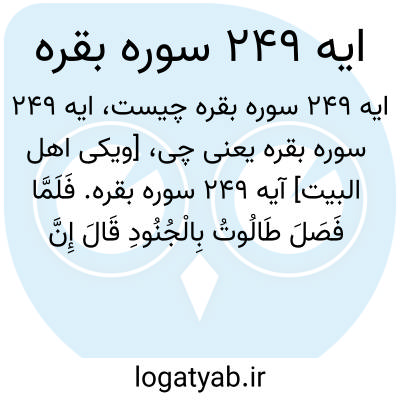 [ویکی اهل البیت] آیه 249 سوره بقره. فَلَمَّا فَصَلَ طَالُوتُ بِالْجُنُودِ قَالَ إِنَّ اللَّهَ مُبْتَلِیکُمْ بِنَهَرٍ فَمَنْ شَرِبَ مِنْهُ فَلَیْسَ مِنِّی وَمَنْ لَمْ یَطْعَمْهُ فَإِنَّهُ مِنِّی إِلَّا مَنِ اغْتَرَفَ غُرْفَةً بِیَدِهِ ۚ فَشَرِبُوا مِنْهُ إِلَّا قَلِیلًا مِنْهُمْ ۚ فَلَمَّا جَاوَزَهُ هُوَ وَالَّذِینَ آمَنُوا مَعَهُ قَالُوا لَا طَاقَةَ لَنَا الْیَوْمَ بِجَالُوتَ وَجُنُودِهِ ۚ قَالَ الَّذِینَ یَظُنُّونَ أَنَّهُمْ مُلَاقُو اللَّهِ کَمْ مِنْ فِئَةٍ قَلِیلَةٍ غَلَبَتْ فِئَةً کَثِیرَةً بِإِذْنِ اللَّهِ ۗ وَاللَّهُ مَعَ الصَّابِرِینَ