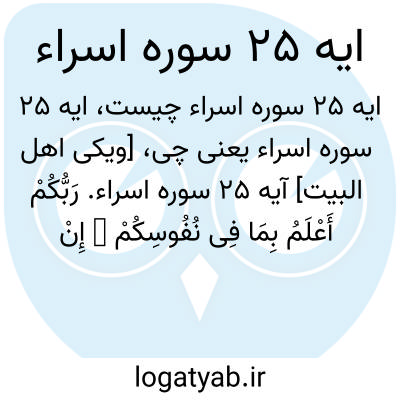 [ویکی اهل البیت] آیه 25 سوره اسراء. رَبُّکُمْ أَعْلَمُ بِمَا فِی نُفُوسِکُمْ ۚ إِنْ تَکُونُوا صَالِحِینَ فَإِنَّهُ کَانَ لِلْأَوَّابِینَ غَفُورًا