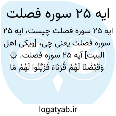 [ویکی اهل البیت] آیه 25 سوره فصلت. ۞ وَقَیَّضْنَا لَهُمْ قُرَنَاءَ فَزَیَّنُوا لَهُمْ مَا بَیْنَ أَیْدِیهِمْ وَمَا خَلْفَهُمْ وَحَقَّ عَلَیْهِمُ الْقَوْلُ فِی أُمَمٍ قَدْ خَلَتْ مِنْ قَبْلِهِمْ مِنَ الْجِنِّ وَالْإِنْسِ ۖ إِنَّهُمْ کَانُوا خَاسِرِینَ